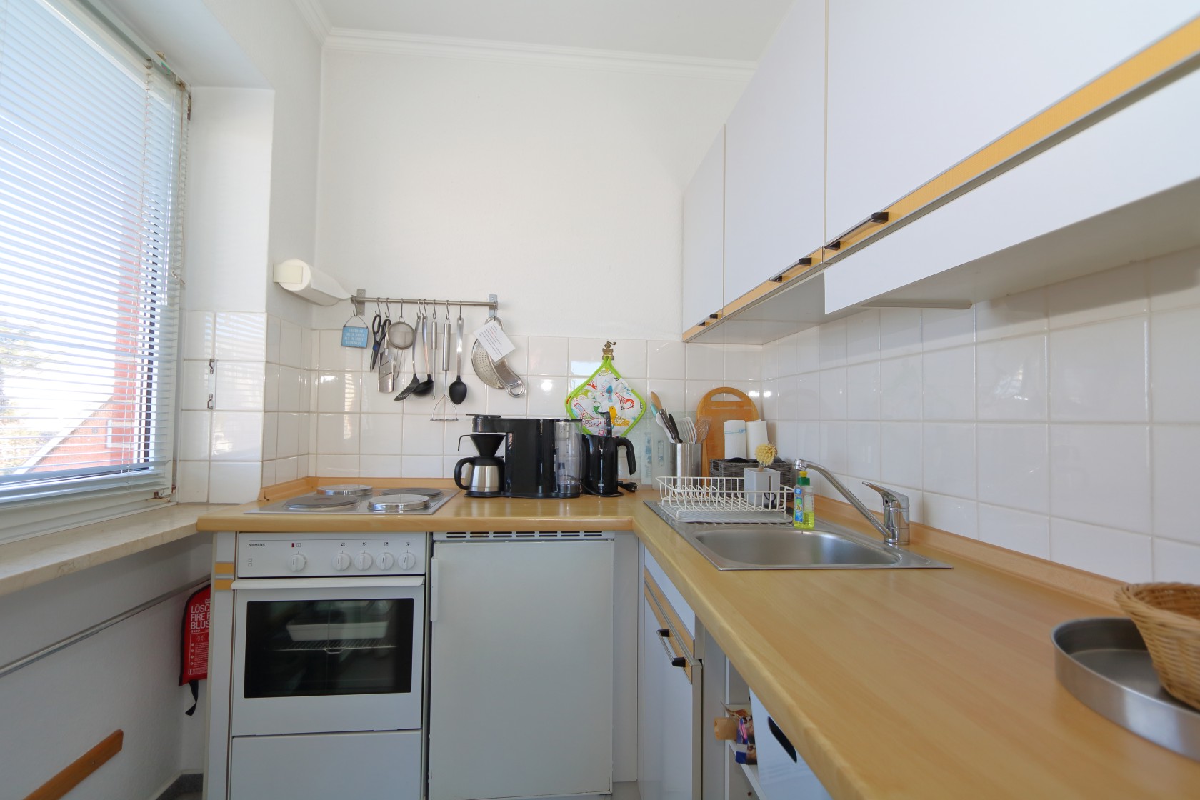 Die Küche ist mit Backofen, Kühlschrank mit Eisfach,Toaster, Kaffeemaschine, Wasserkocher und ausreichend Geschirr und Küchenutensilien ausgestattet.