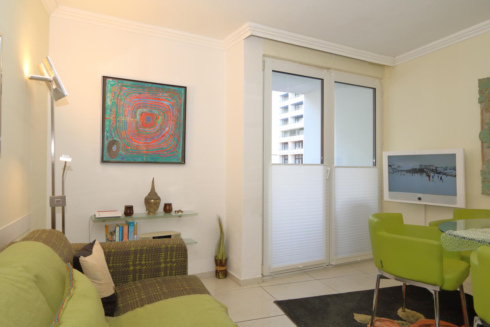 Ein moderner Einrichtungsstiel in hellen Farben erwartet Sie. Wohnzimmer mit bequemer Sitzgarnitur und gemütlichem Esstisch. Flachbildschirm und Radio sowie kostenloser Internet-Zugang über WLAN.