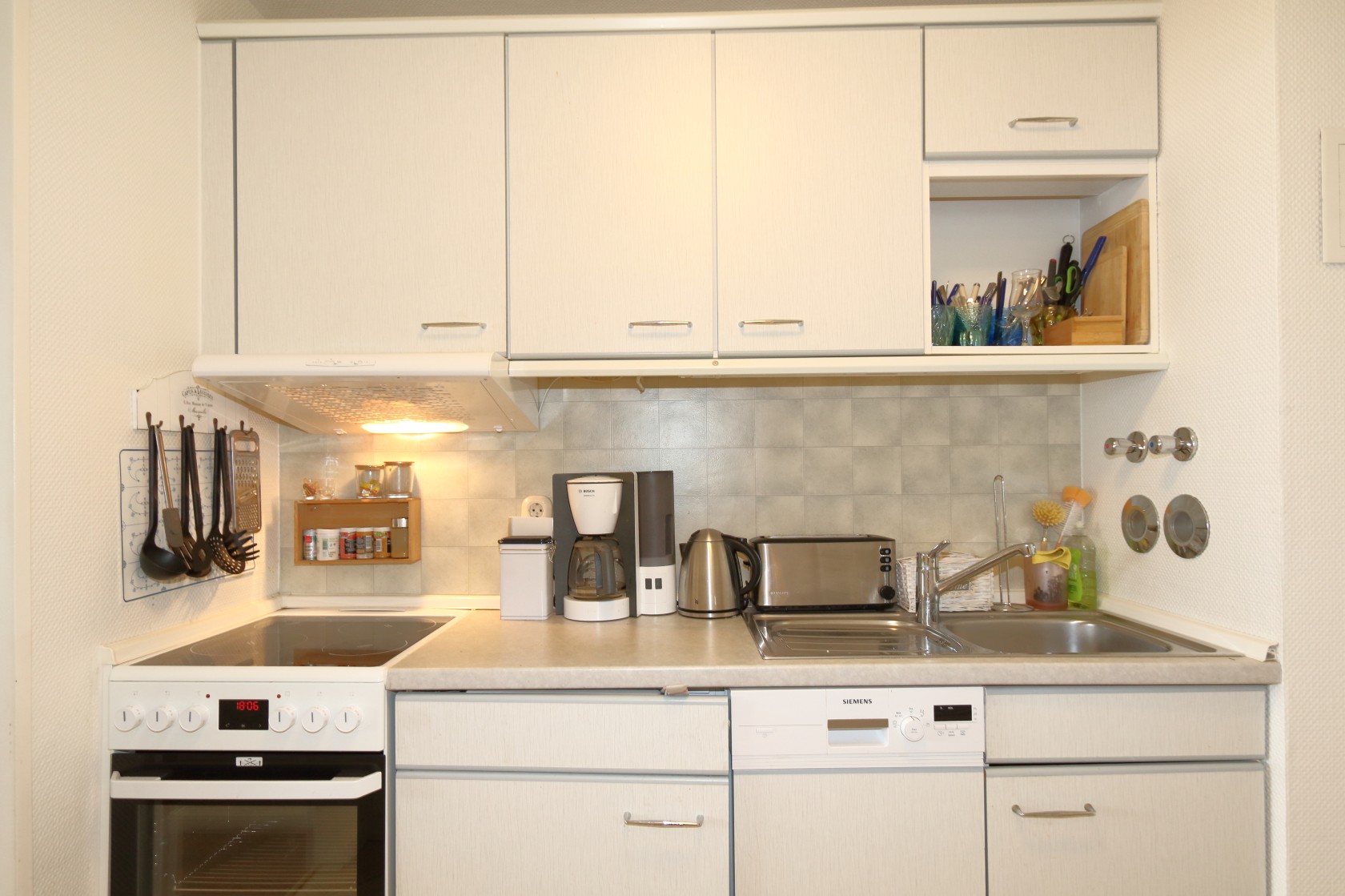 gängige Küchenutensilien, Herd , Dunstabzugshaube,
