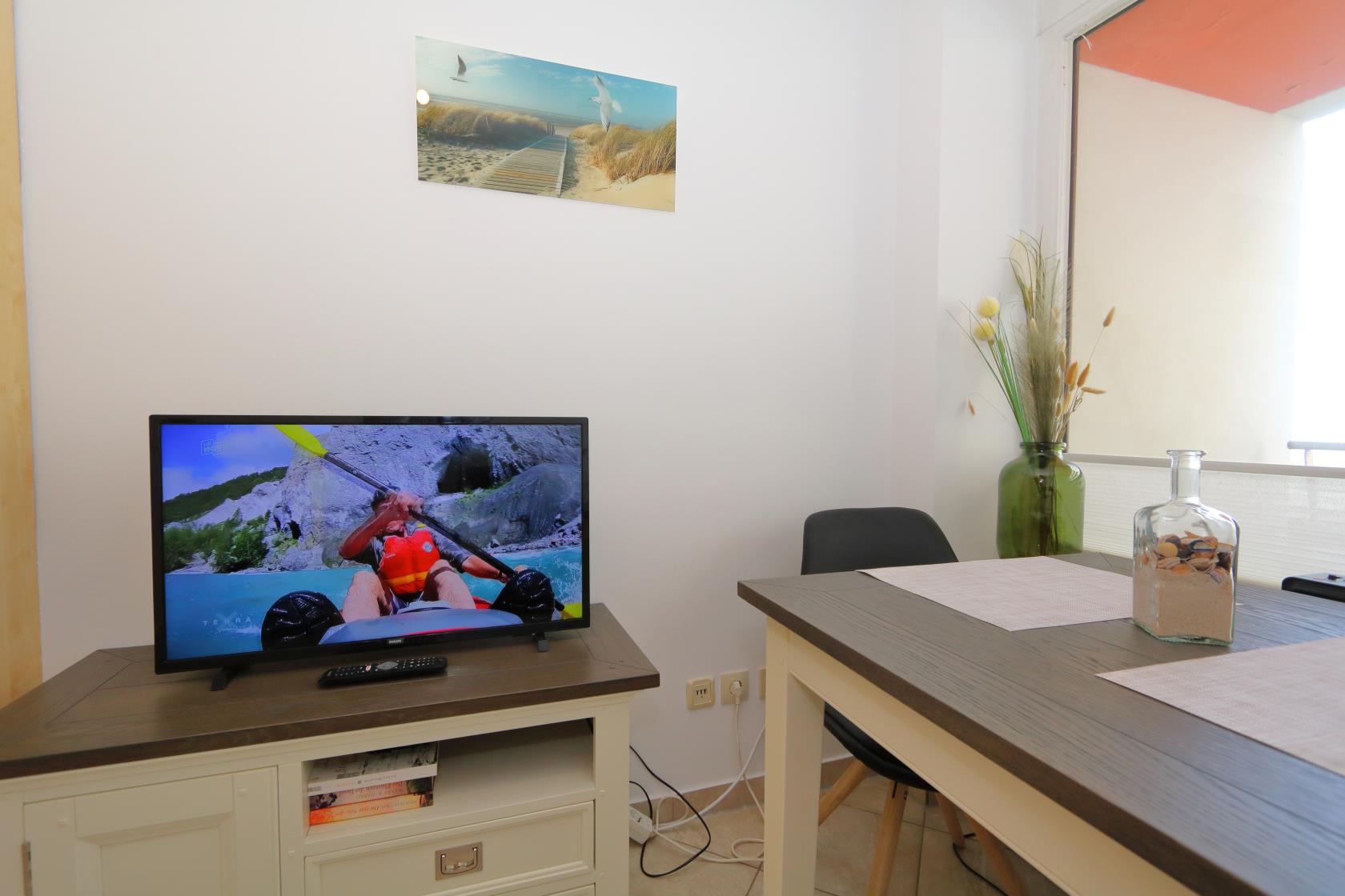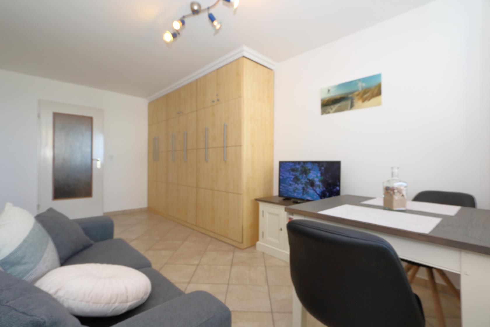 Wohn-/Schlafzimmer mit TV SAT/Kabel, W'Lan, Sofa, Eßtisch sowie Zugang zum Balkon.