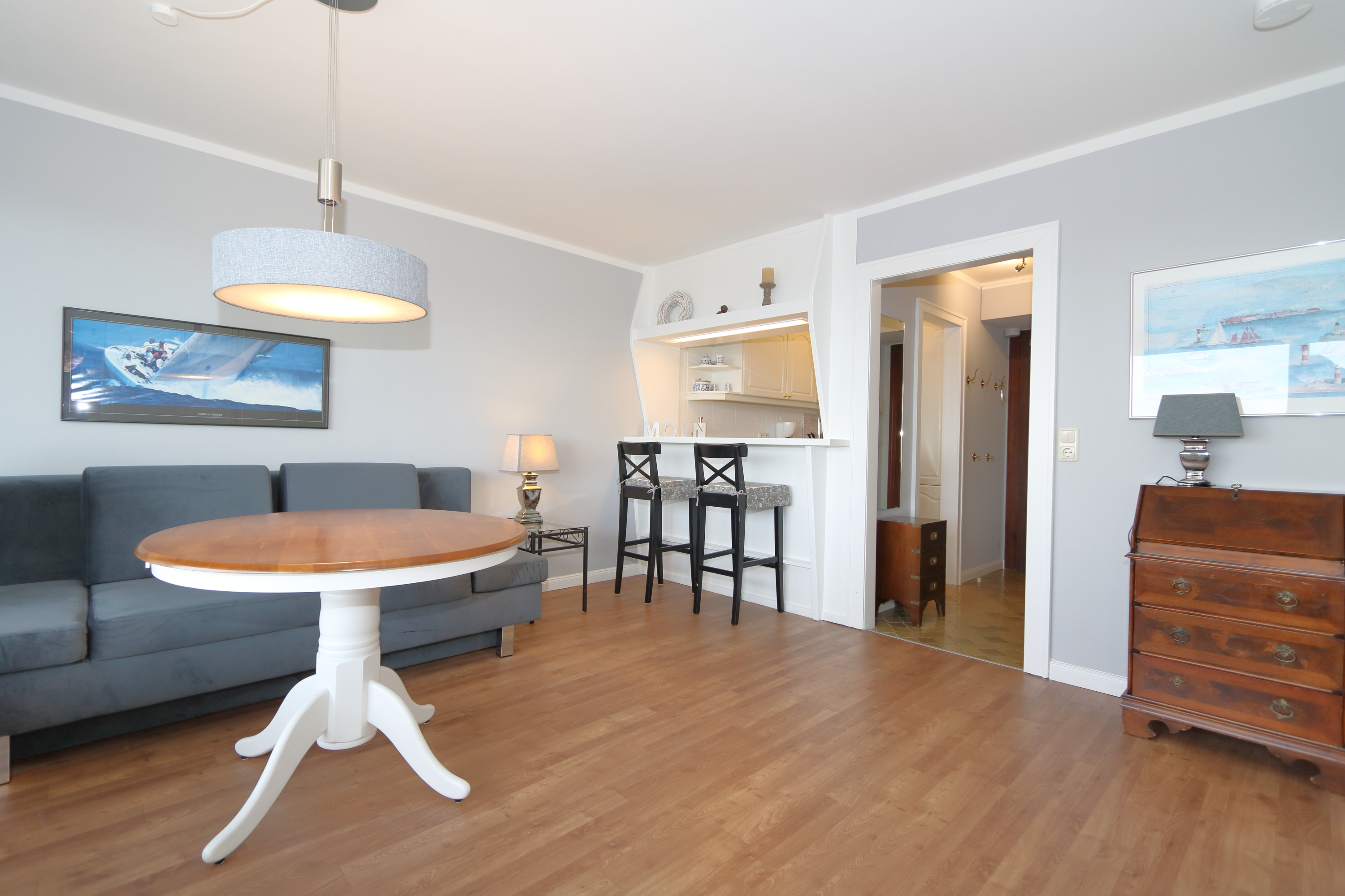 Das komfortable Ferienappartement ist vielseitig ausgestattet mit einer offenen Küche mit weißem Tresentisch, einem Badezimmer und einem hellen Wohn-und Schlafbereich. Zusätzlich verfügt es über einen Balkon mit Sitzmöglichkeiten, der Ihnen einen wunderbaren Blick über die Dächer von Westerland bis in die Ferne gewährt.