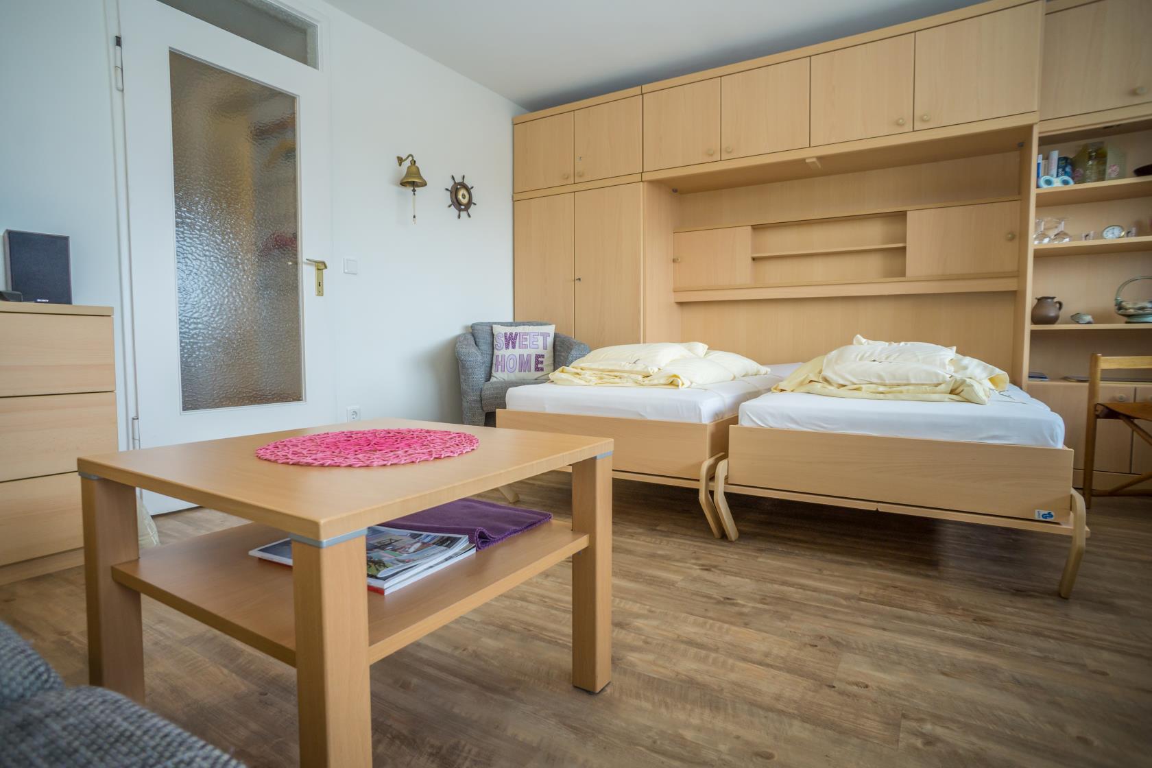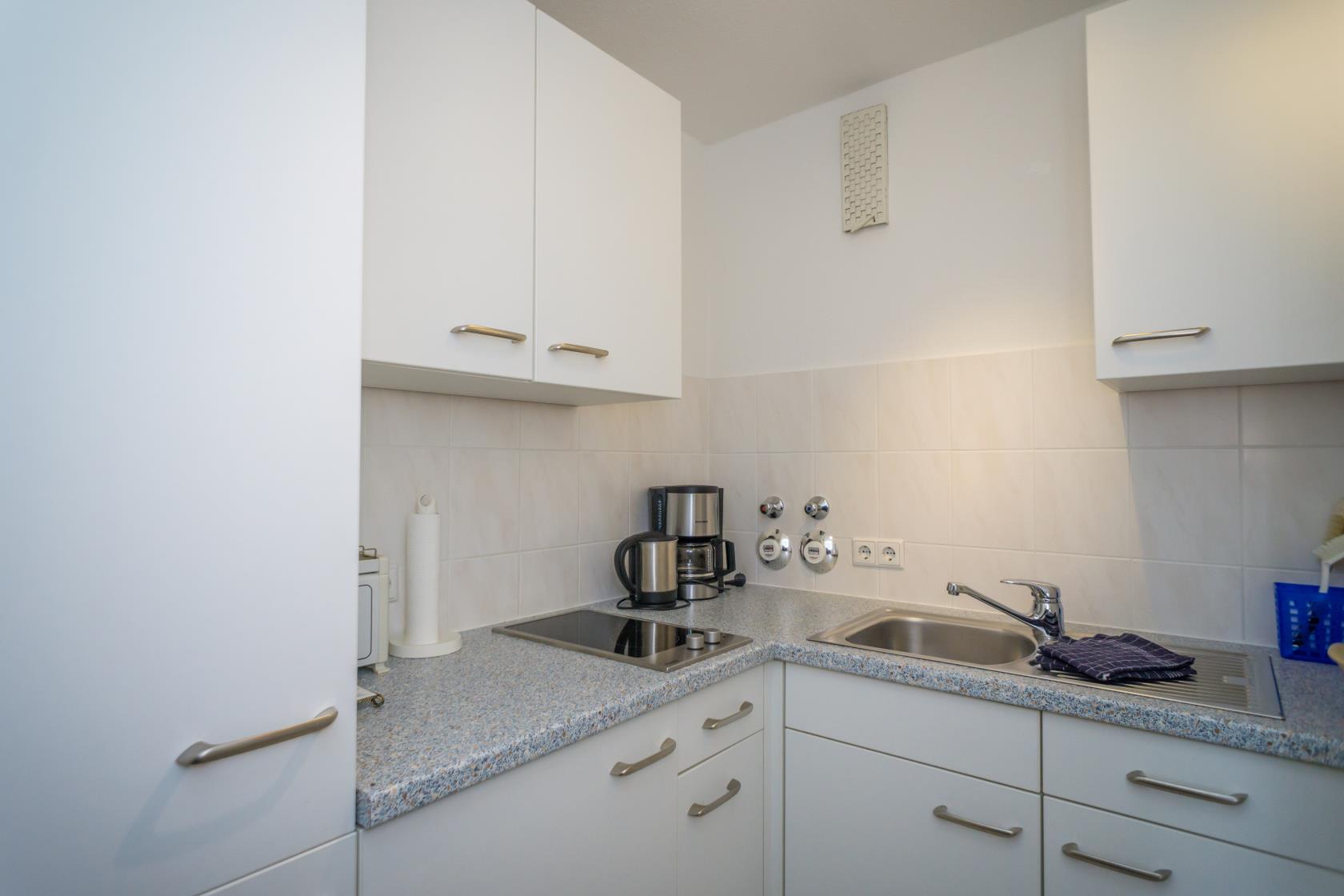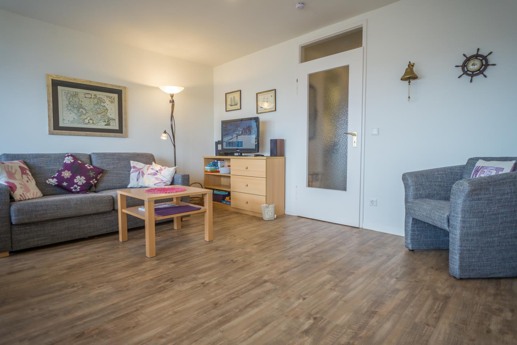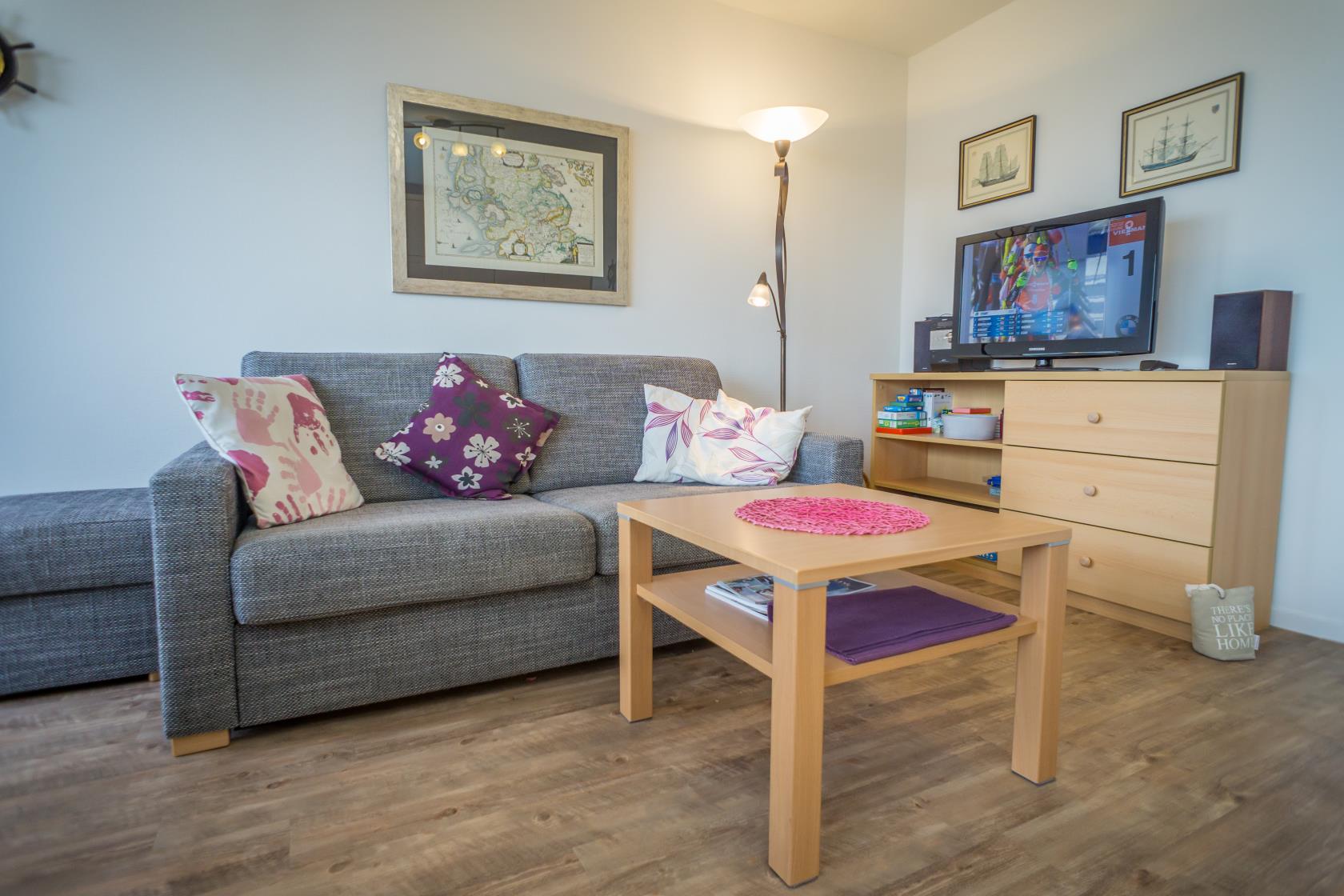 Das App. 85 befindet sich im Haus "Sylter Welle" zur Landseite im Neuen Kurzentrum, Andreas-Dirkstr. 2, in der 8. Etage. Die Wohnung ist insgesamt ca. 40m² groß und beinhaltet einen Wohn/Schlafraum mit mit DoppelSchrankbett (Einzelmatratzen) , Sofaecke sowie einem Eßplatz am Fenster, von wo aus Sie eine tolle Aussicht über die Innenstadt von Westerland geniessen können. Ferner hat die Wohnung eine moderne sep.Einbauküche mit Mikrowelle. Das Wannenbad mit Duschvorrichtung bietet genügend Platz. Die Wohnung ist gemütlich für 2 Personen ausgestattet. Ferner sind Stereoanlage sowie Flachbildschirm vorhanden. Im Haus kann en freies WLAN Netz genutzt werden. Hier sind keine Tiere gestattet, Nichtraucher-Wohnung. . Die Kureinrichtungen/Schwimmbad "Sylter Welle" , die Strandübergänge zur Musikmuschel/ Promenade befinden sich gleich um die Ecke, ideale Lage für Ihren Strandurlaub!