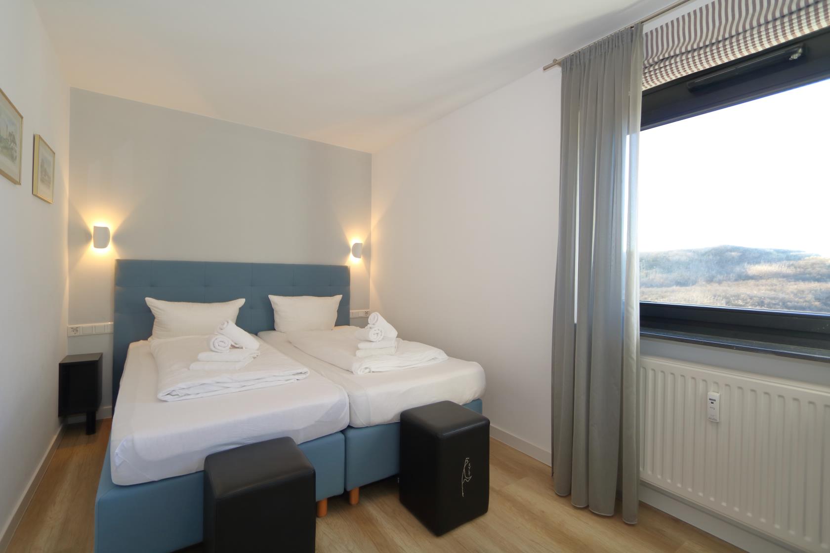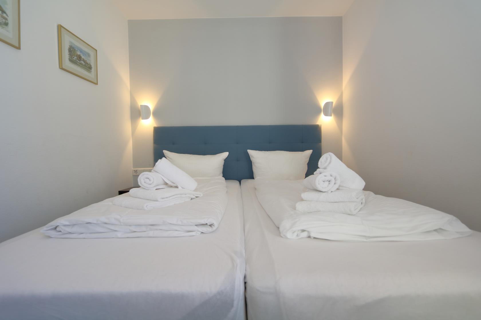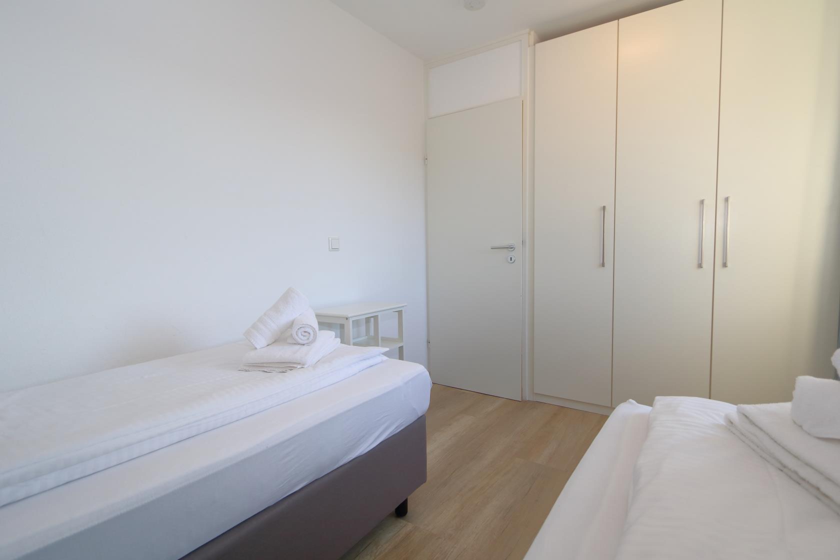 Ein Schlafzimmer mit 2 Einzelbetten, Einbauschrank