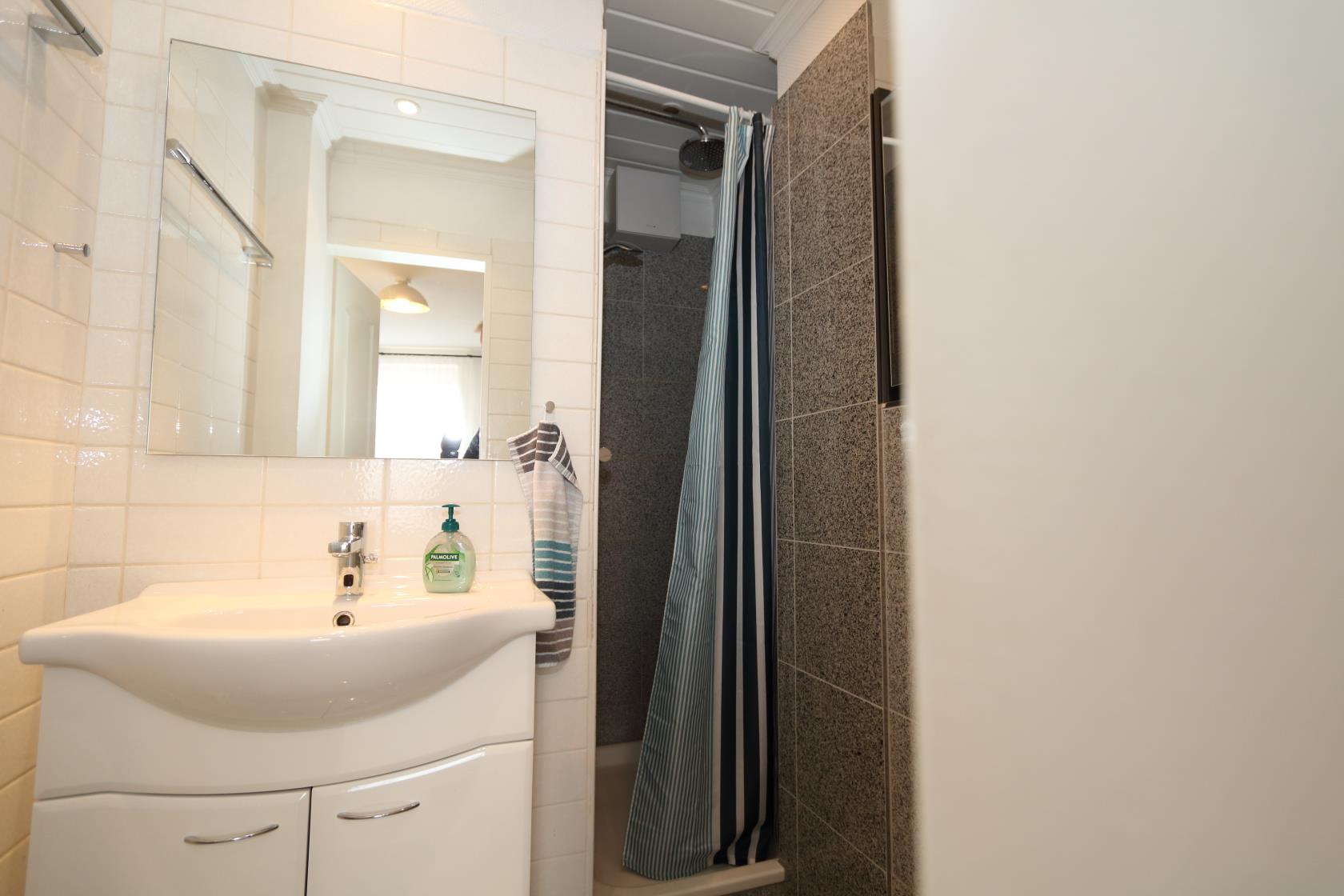 Am Eingang befindet sich eine Garderobe. Von hier aus kommen Sie in das moderne Duschbad.
