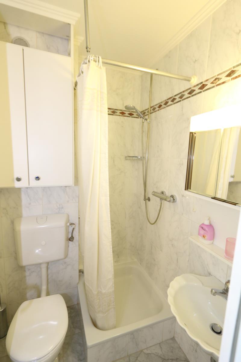 Das helle und praktisch eingerichtete Ferienappartement verfügt über ein Duschbad (Föhn vorhanden), eine kleine Pantry-Küche und über einen Schlaf-und Wohnbereich. Das Appartement hat große Fenster.