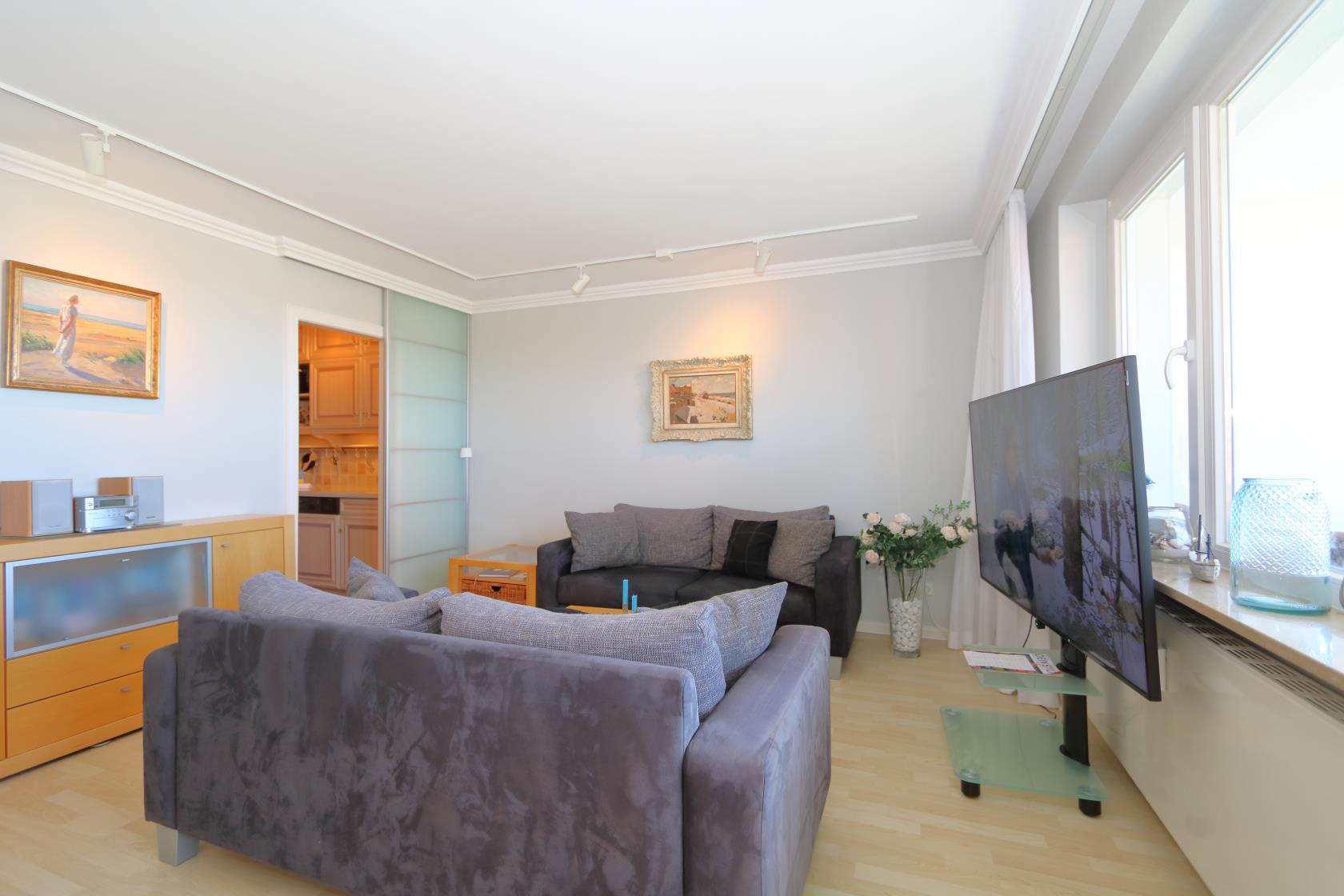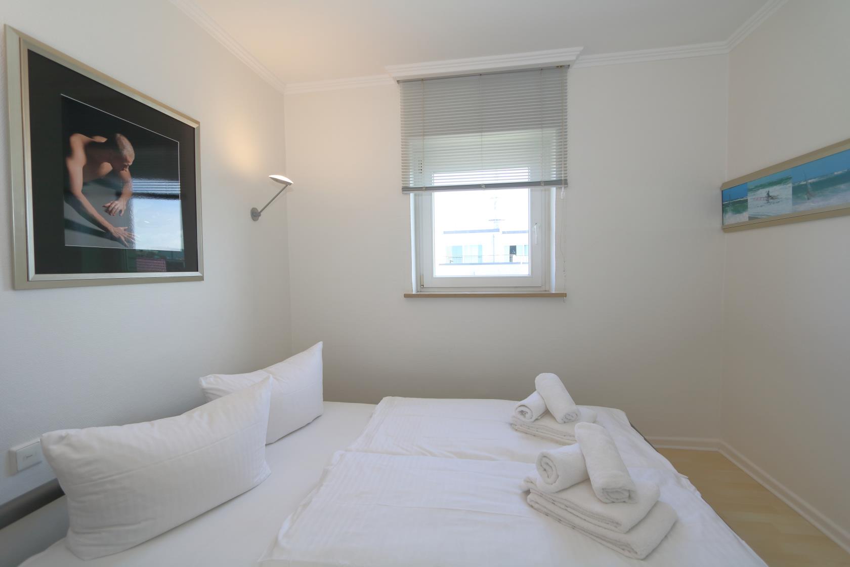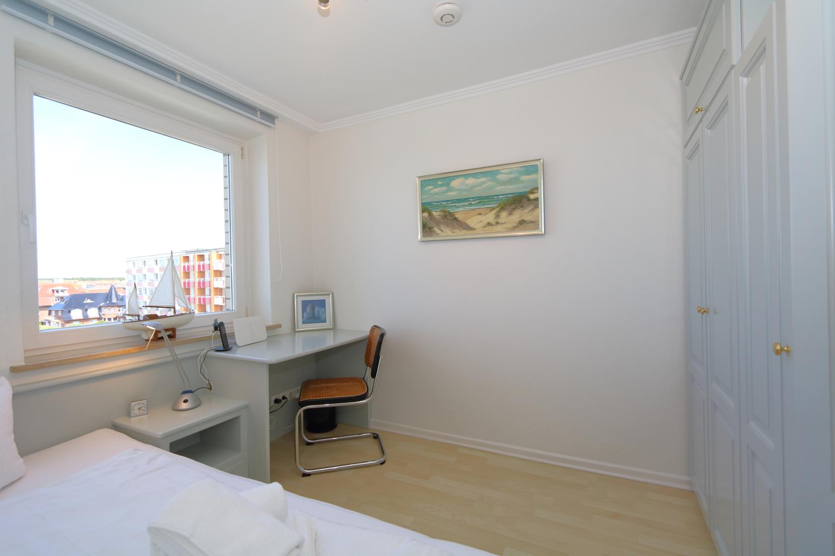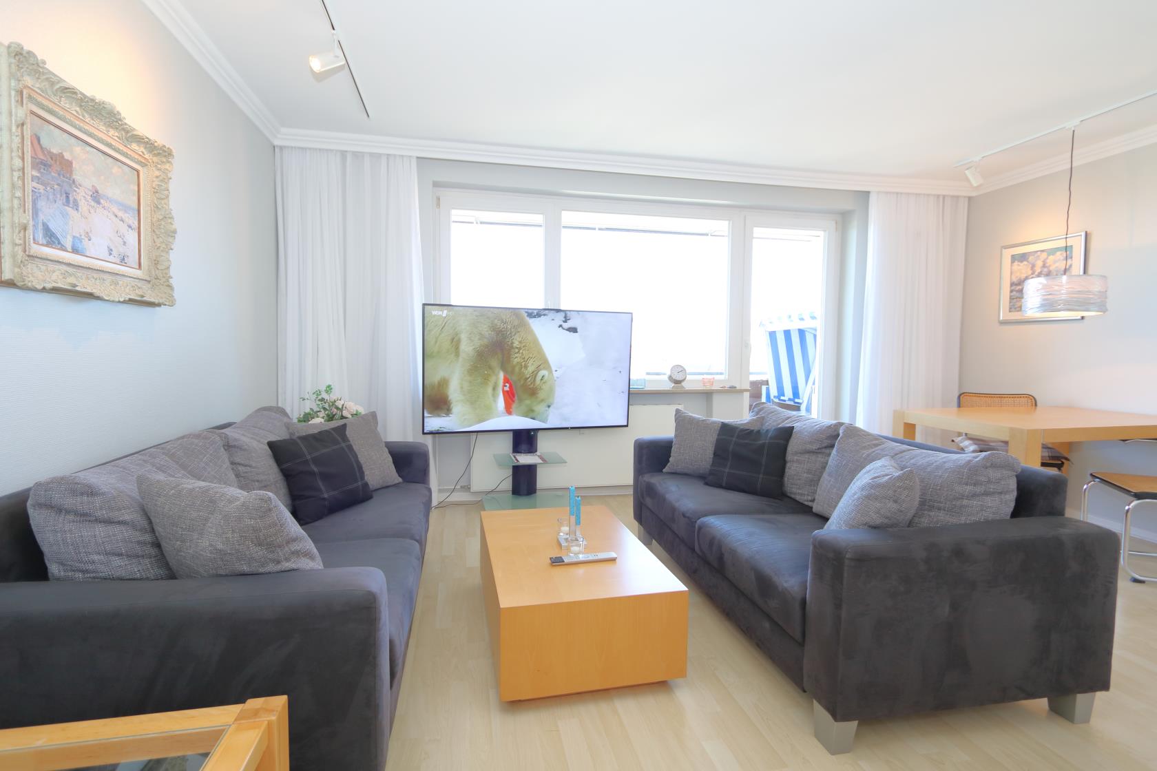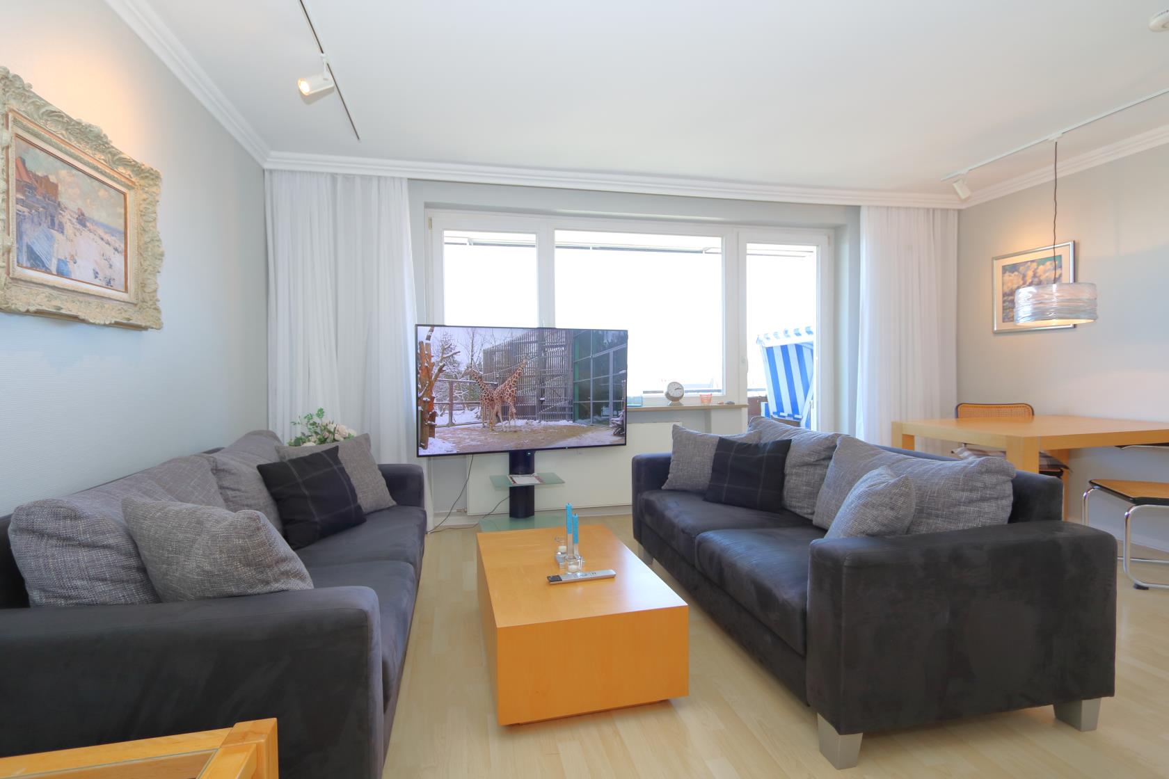direkt am Strandübergang Brandenburgerplatz. Es liegt in der 4. Etage und besteht aus einem Schlafraum mit französischem Bett, gemütlichem Wohnzimmer mit großer Sofaecke und separatem Essplatz. Es gibt eine sep. kleine Einbauküche (4 Plattenheld/ Backofen/Geschirrspüler) ,Bad mit Wanne/WC und großem Balkon nach Nord/West mit Blick in Richtung Strand/Dünen. Wenn Sie es wünschen, haben Sie hier die Möglichkeit getrennt zu schlafen, da in einem kleinen Extrazimmer noch ein Einzelbett steht. Das Appartement ist durchgehend mit Laminatboden ausgelegt und gut ausgestattet. Ferner sind Farb-TV,Stereoanlage und Telefon vorhanden/ WLAN-Anschluss kann genutzt werden. Ein Garagenplatz bzw. Aussenstellplatz am Hause kann mit genutzt werden. Sie wohnen zentrumnah und in nächster Nähe vom Strand, eine tolle Lage für den Strandurlaub. Dies ist eine Nichtraucherwohnung, keine Tierhaltung gestattet.