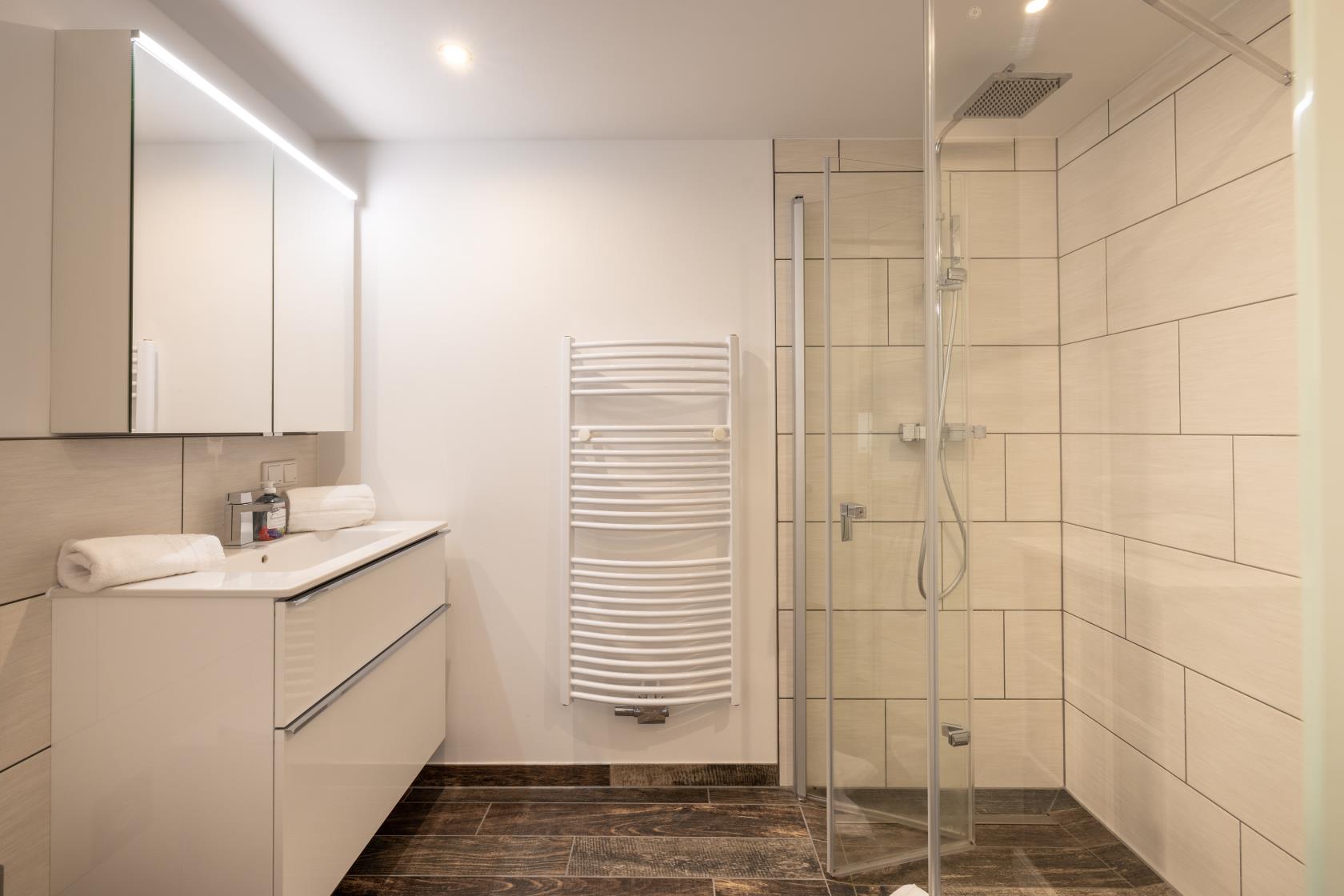 Geräumiges, helles Duschbad mit ebenerdiger Dusche